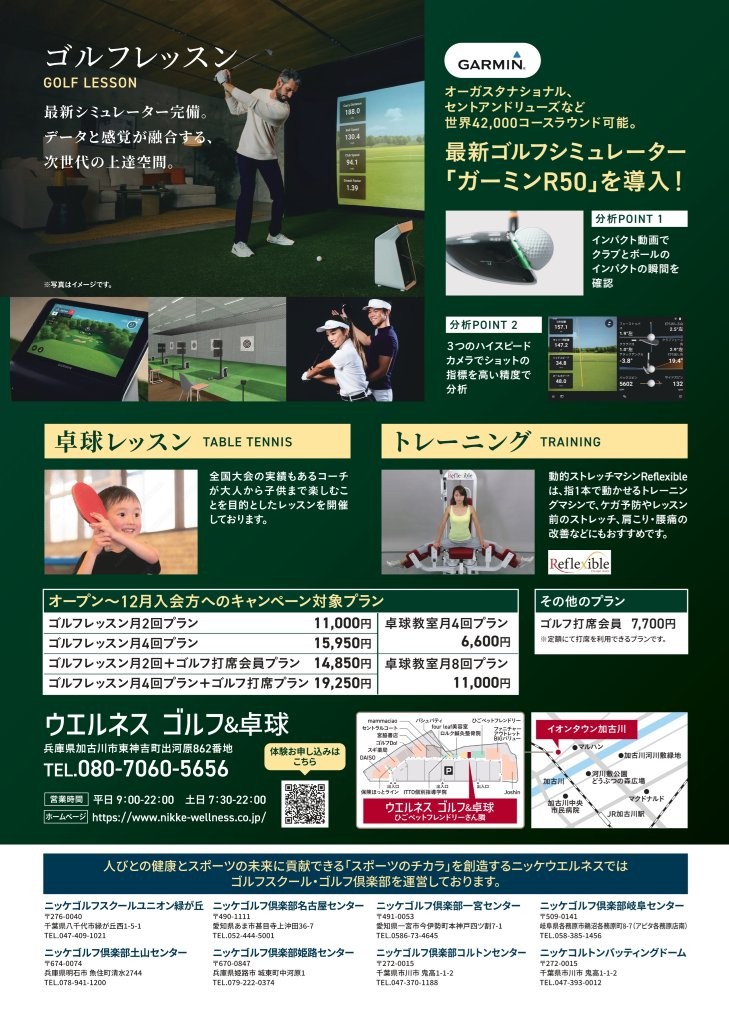 ゴルフ:https://www.instagram.com/wellness.golf.kakogawa/